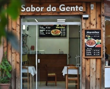 Um espaço simples e acolhedor no coração do bairro, onde a comida caseira ganha vida em marmitas transparentes.